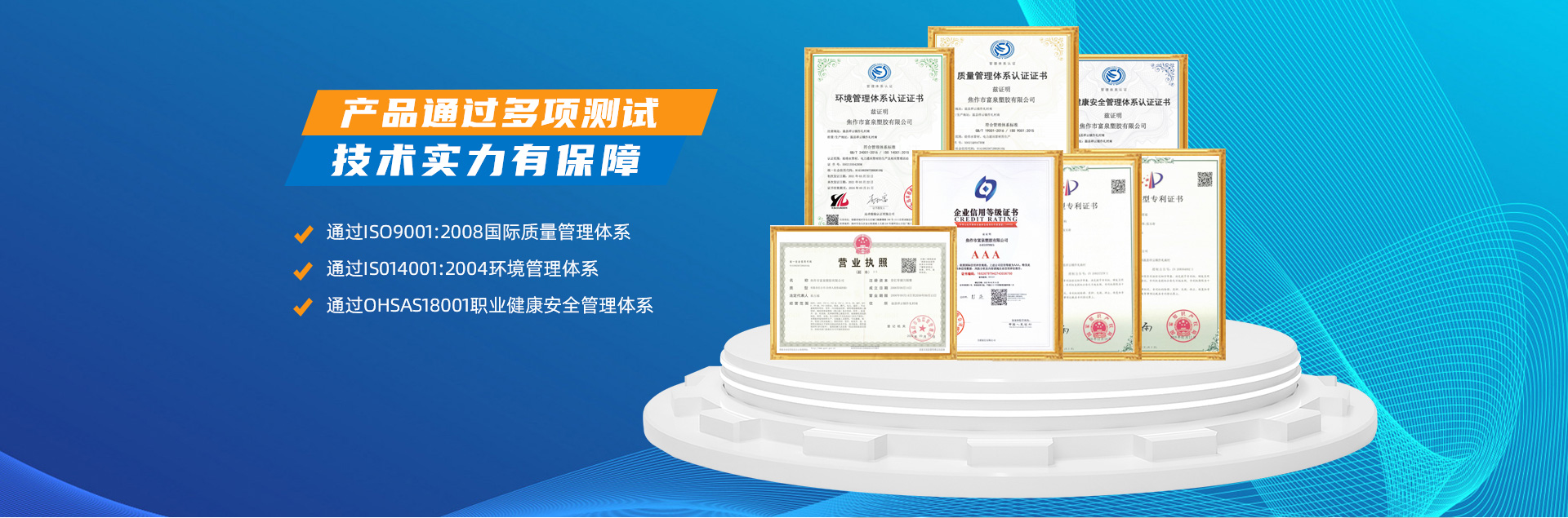 - 焦作市富泉塑胶有限公司,创立于1995年,是一家集研发、设计、生产、销售为一体的大型管材企业。公司位于太极故里、黄河之滨一一河南焦作温县。公司占地128亩,现有职工210余人,其中具有中技术职称的19人。生产、检验设备58台(套),包括PVC实壁管生产线11套、PE实壁管生产线12套、HDPE双壁波纹管生产线6套、PVC双壁波纹管生产线5套,检验设备14台(套)。主要产品有:Φ20mm-630mm、各种压力规格的PVCU、PVC-M、PE给水管材,PVC-U节水灌溉管材,HDPE燃气和矿用管材,DN200-800mm的HDPE、PVC双壁波纹管及各种喷灌、滴灌工程材料。承接大中型市政供排水、饮水安全及节水灌溉等工程。 富泉塑胶公司重视产品的质量、安全、环保和节能,在同行业中率先完成了“新华节水产品认证”,全方面通过ISO9001:2008国际质量管理体系、IS014001:2004环境管理体系和OHSAS18001职业健康安全管理体系的一体化导入,并建立起规范的现代企业管理体系。公司以“质量”为先导,采用质量跟踪、多环节把关的方法,组建具有行业水准的企业技术检测中心,常年委托水利部节水灌溉设备检测中心、河南省产品质量监督检验院对产品跟踪检测,并由中国人民保险公司承保产品质量。公司连续多年被河南省水利厅确定为“安全饮水设备、节水灌溉设备”定点生产企业,并获得“中国名优产品”“质量、服务、信誉AAA企业”“河南省**产品”“河南省水利企业”“河南省守合同、重信用企业”等荣誉称号?! 「蝗芙汗炯岢帧坝没稀钡姆窭砟睿て谝岳?,全方面关注客户价值,不断提升服务水平。服务队伍常年为客户的产品设计、施工、安装提供合理的方案和全程细致、周到、**、快捷的技术服务。公司自成立以来,一直坚持以人为本的宗旨,塑造企业形象,并致力于新产品的开发,凭借雄厚的技术开发能力,先进的工艺制造流程,严格的质量管理保证体系,优良的售后服务网络,已成为河南省大的饮水、灌溉及排水管材设备制造商。产品畅销全国,而且还以公司雄厚的综合实力在业界中占据着重要的地位。